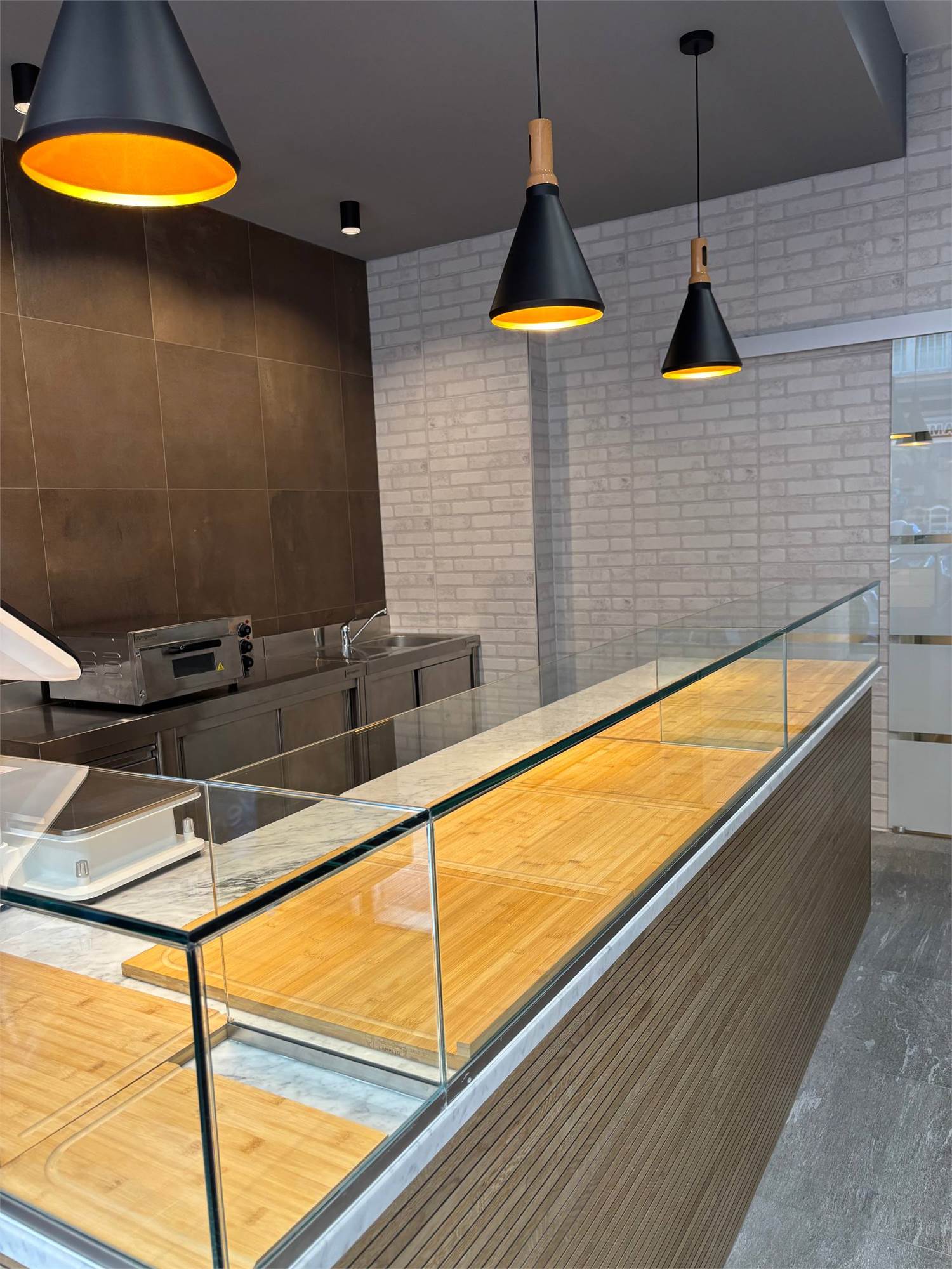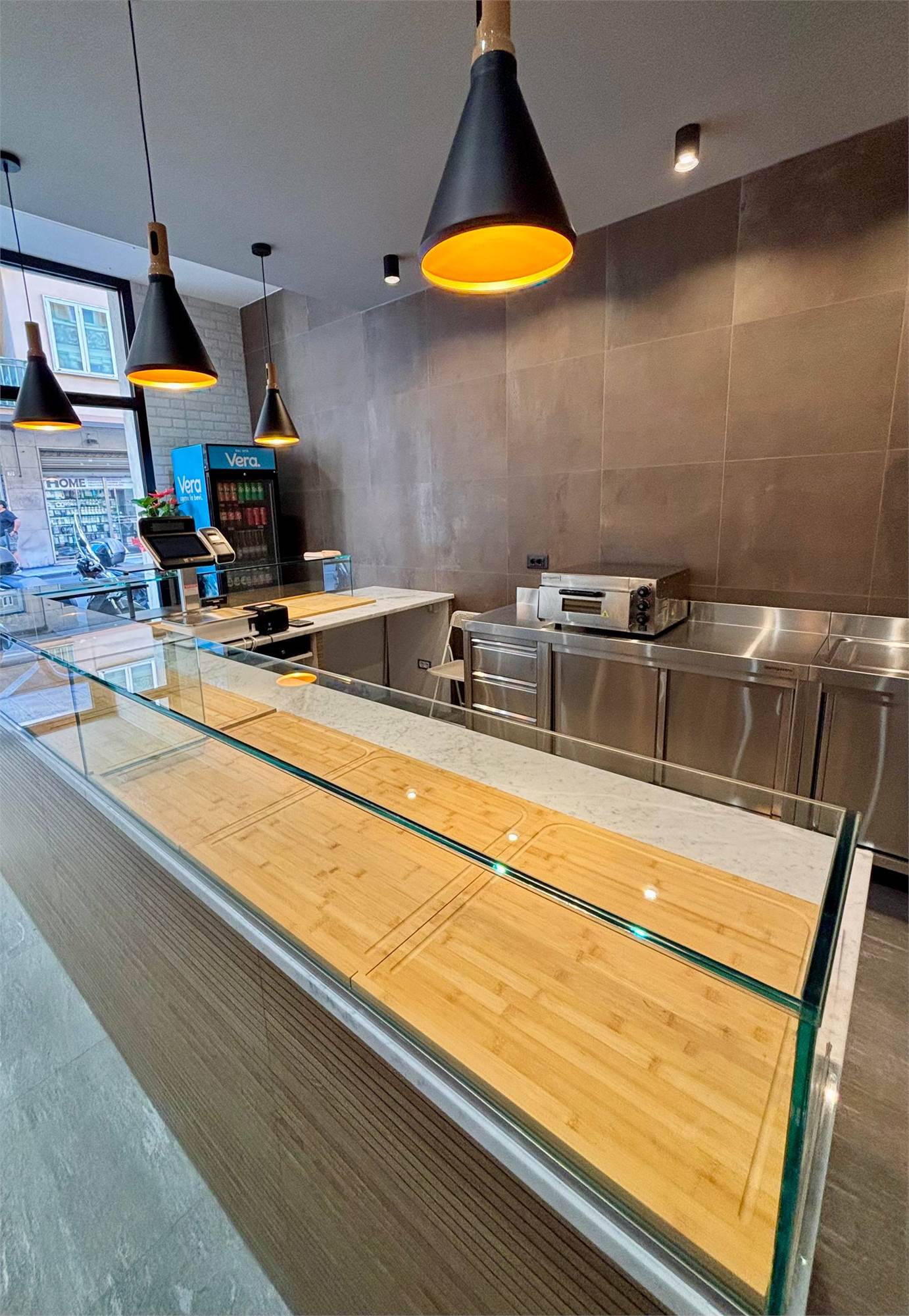 Sala vendita: con banco espositivo e arredi in acciaio inox di qualità premium