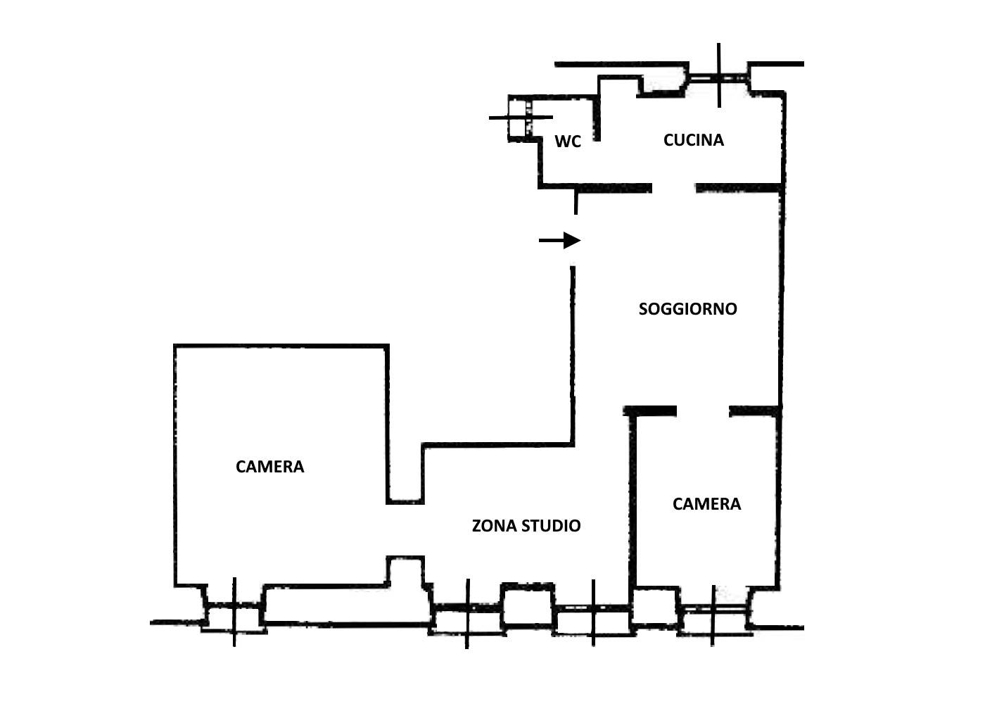 Internamente l'immobile è composto da ingresso in soggiorno, cucina, camera matrimoniale, cameretta, zona studio / disimpegno e bagno.