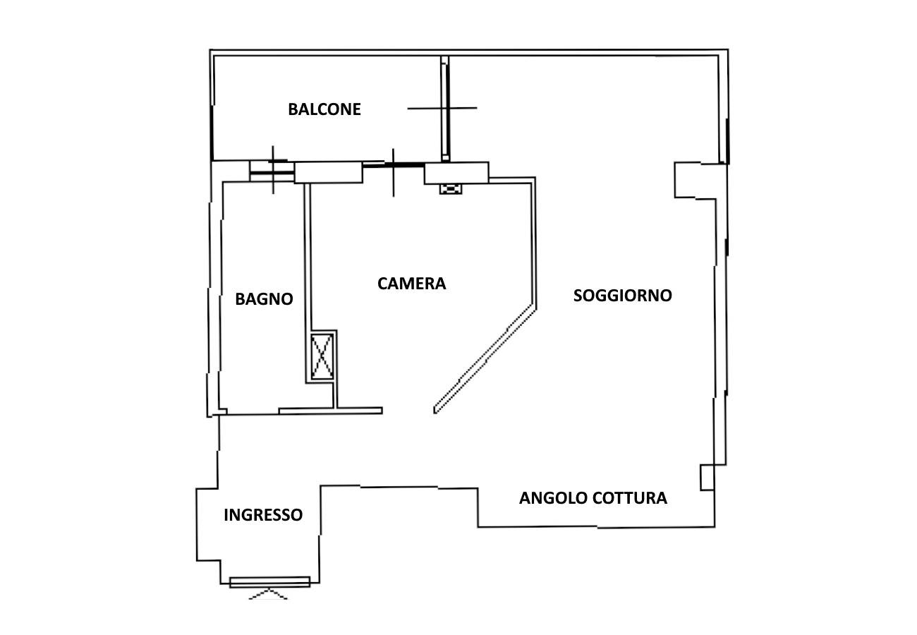 Internamente l'immobile è composto da ingresso, soggiorno con angolo cottura, camera, bagno fienstrato e balcone.