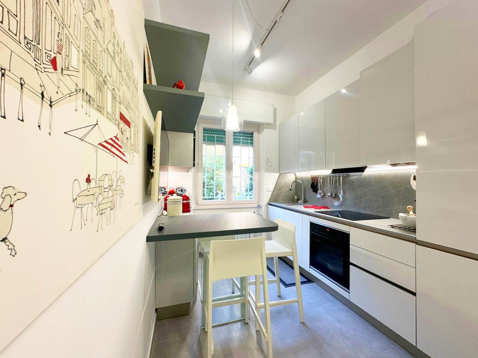Appartamento TOTALMENTE RISTRUTTURATO, venduto come da foto, ossia totalmente ARREDATO (*) (con mobilio di altissima gamma).