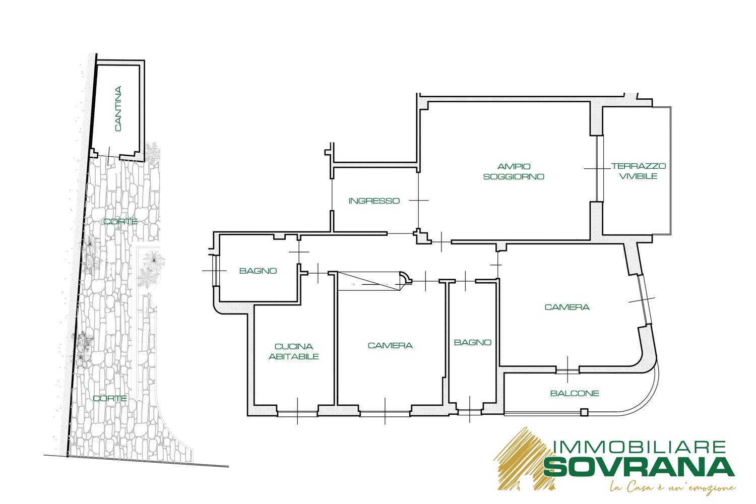 Compresi nella vendita ci sono una piccola corte esterna che serve da accesso ad una CANTINA.