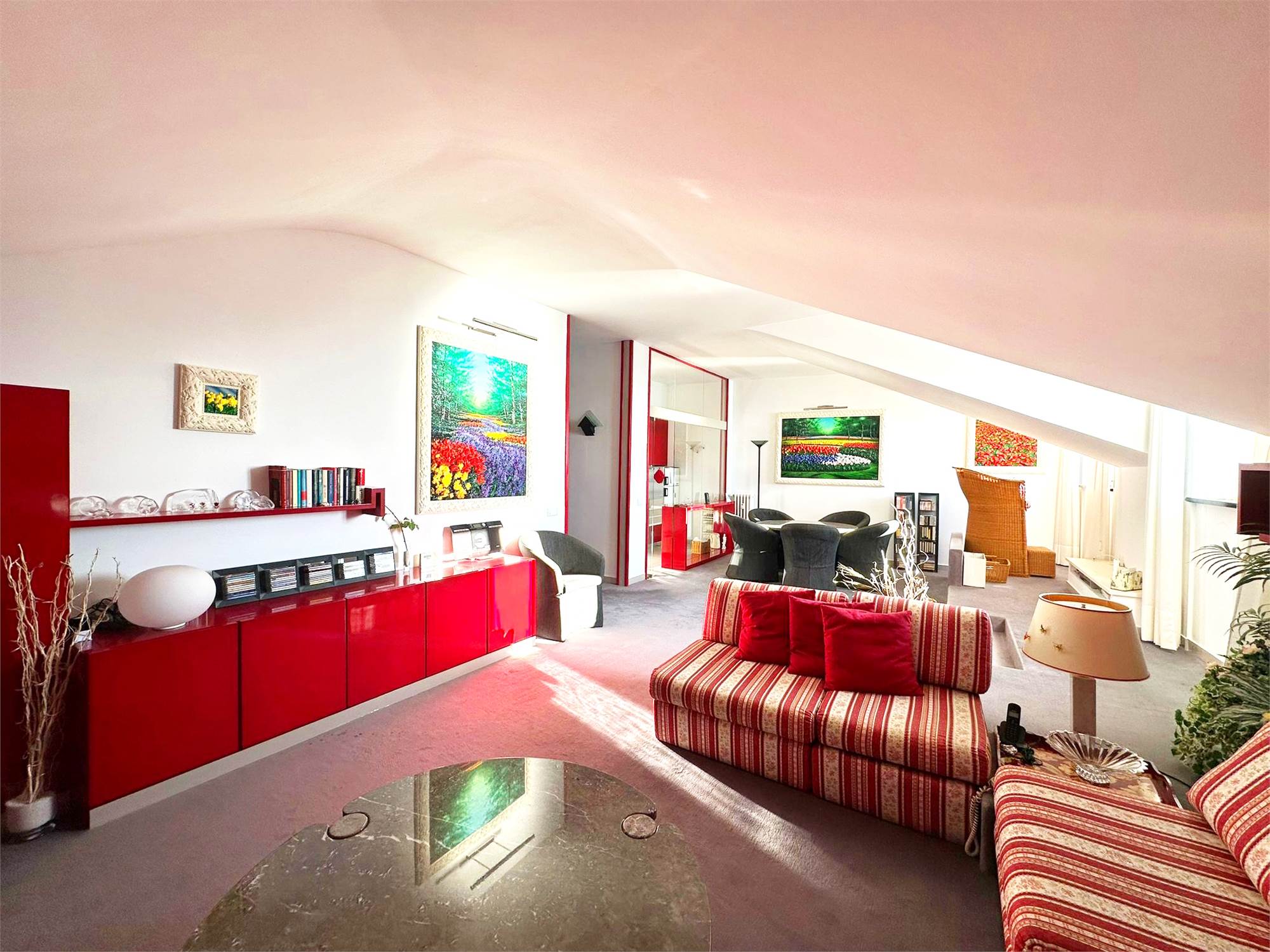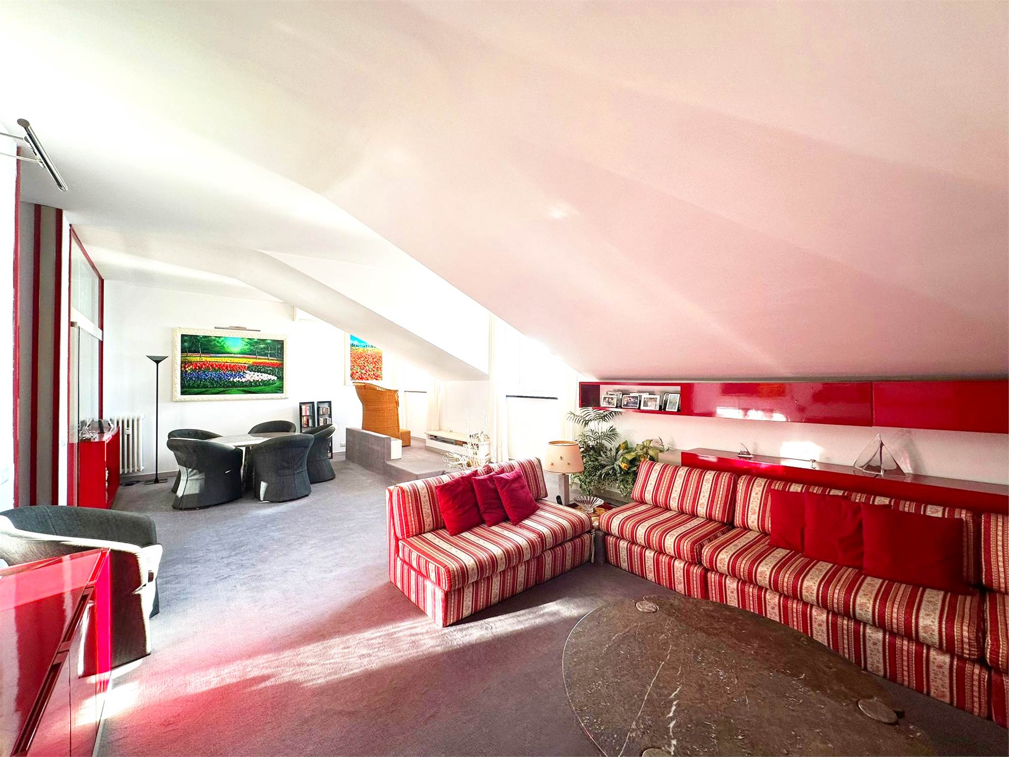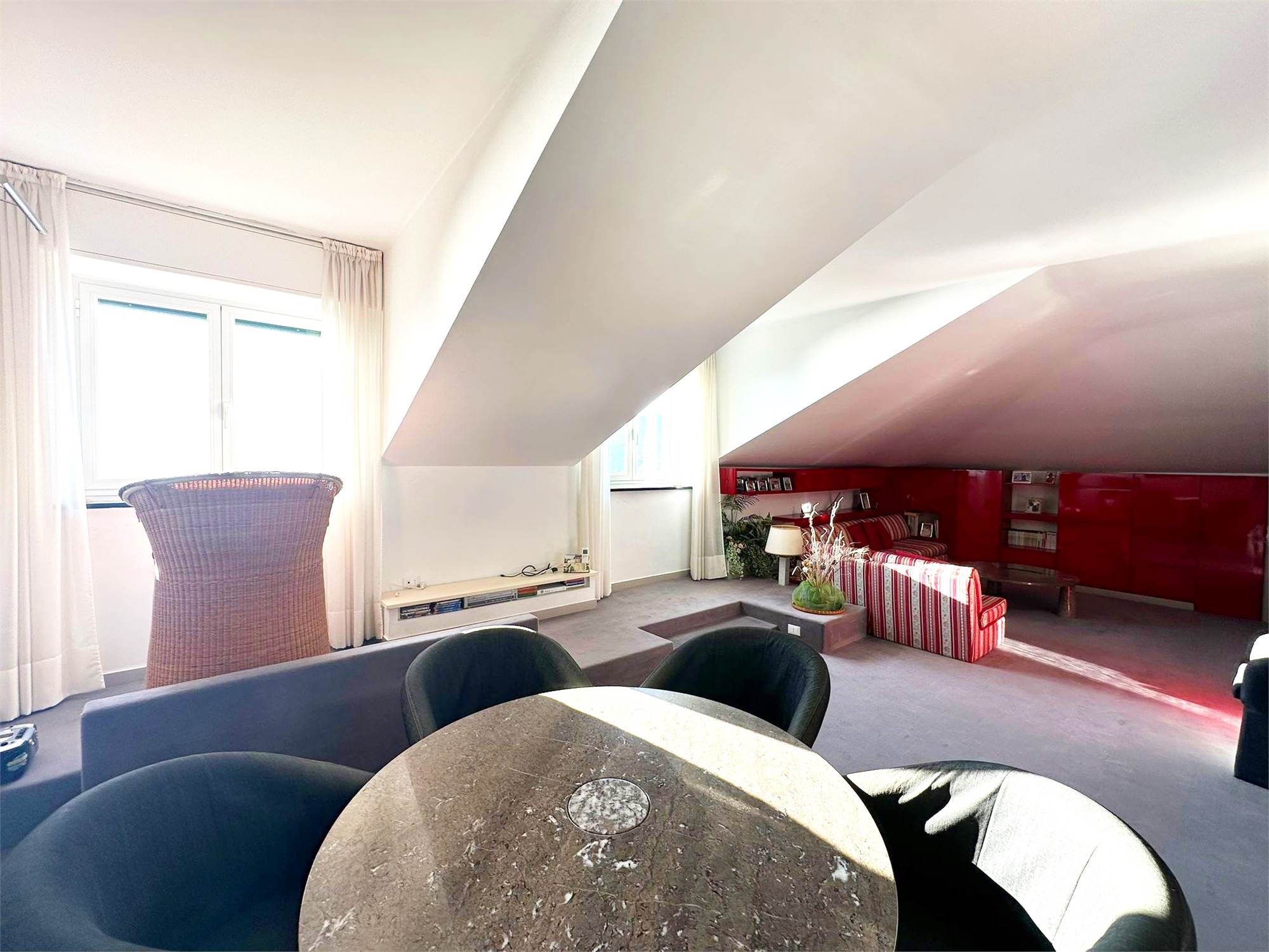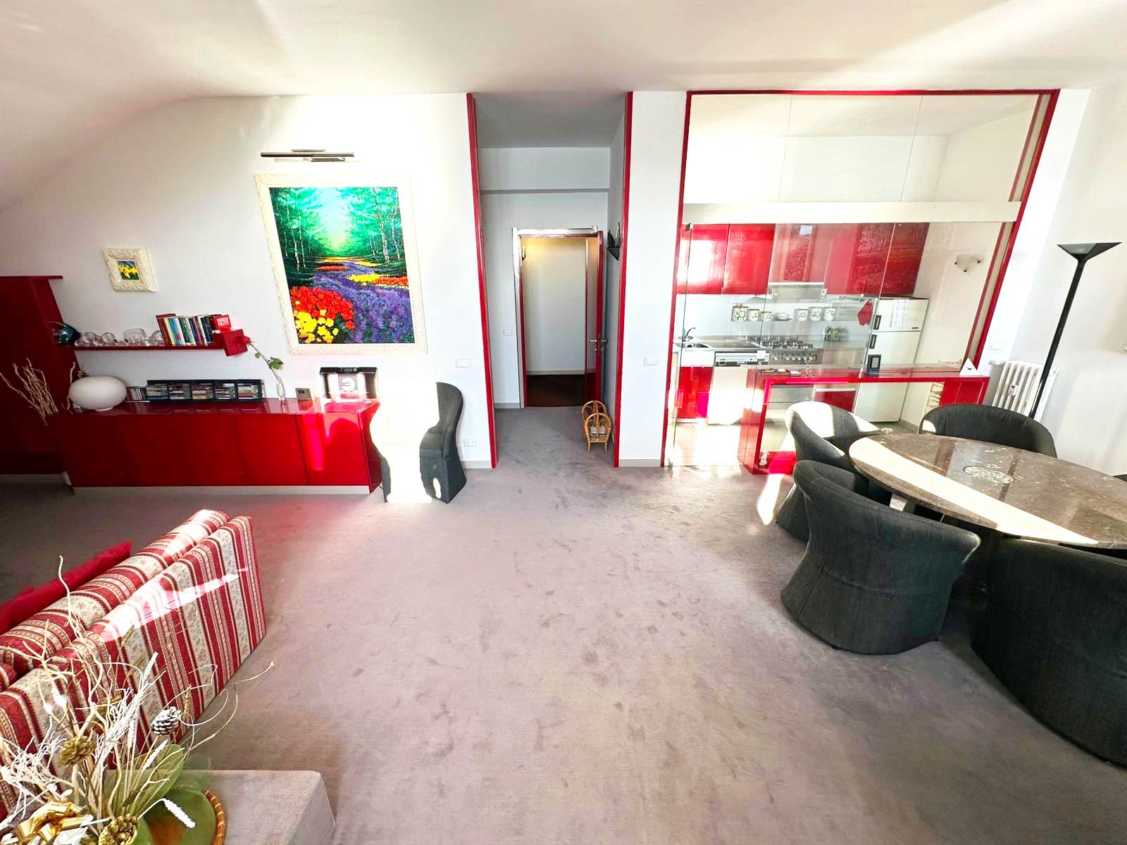 L'appartamento, che ha una metratura di 135 mq all'ultimo è composto da ingresso, salone doppio con zona cottura, 2 camere da letto e doppi servizi.