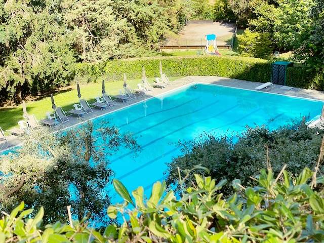 C'è una splendida piscina a sfioro aperta 3 mesi l'anno ed accessoriata con spogliatoi separati uomo-donna e docce anche calde.