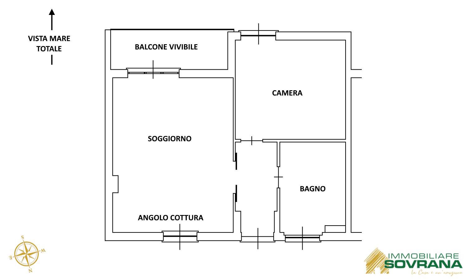Internamente è composto da ingresso, ampio soggiorno con angolo cottura, camera matrimoniali, bagno finestrato e balcone fronte mare.